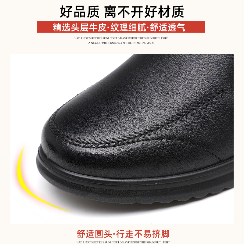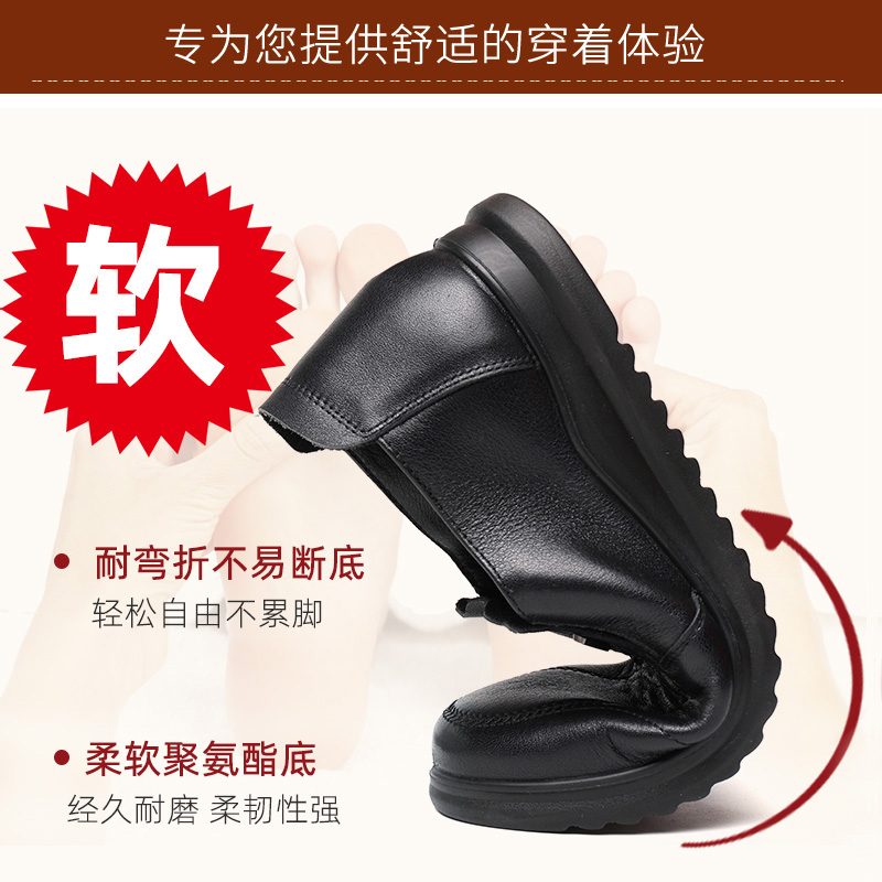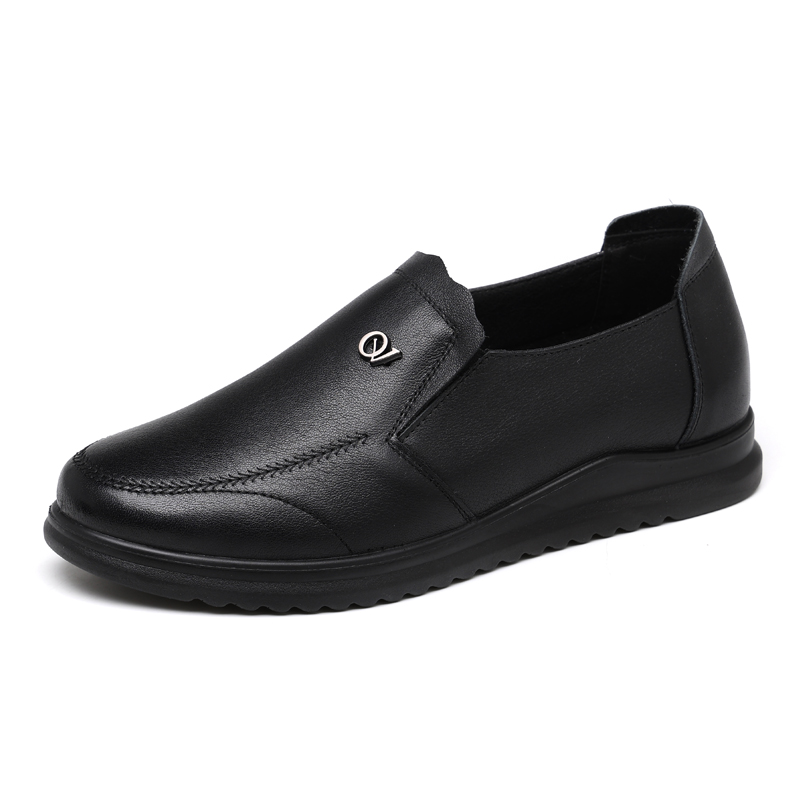 防滑圆头女鞋 中老年大码 清仓 平底休闲一脚蹬老人鞋 真皮软底妈妈鞋