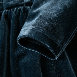 茗思名媛气质丝绒连衣裙女2025秋季 拼接撞色钉珠宽松显瘦裙子 新款