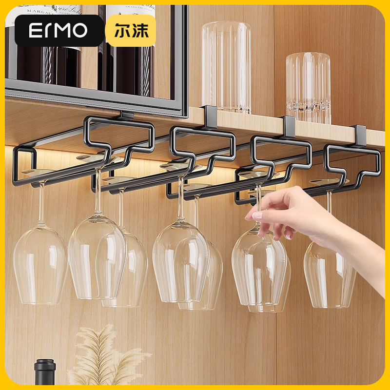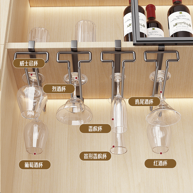 枪灰免打孔红酒杯架倒挂酒柜高脚杯收纳架子家用悬挂轻奢高档摆件