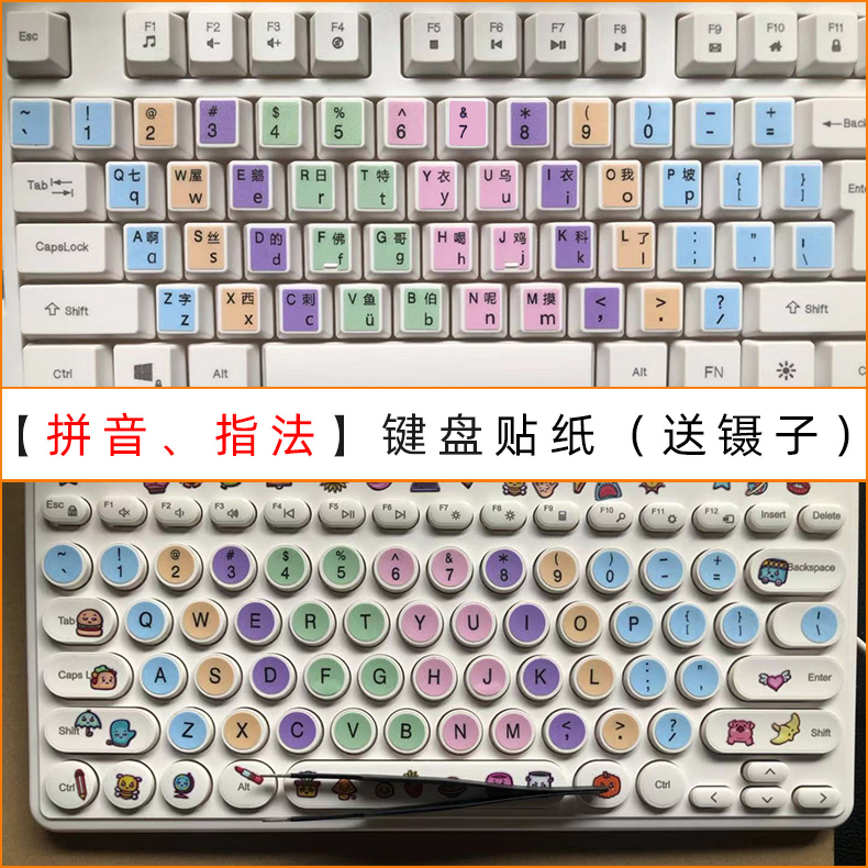 大小写拼音谐音英文字母台式 键盘贴纸笔记本字母按键贴初学者分区指法练习打字贴少儿童小学生训练盲打训练