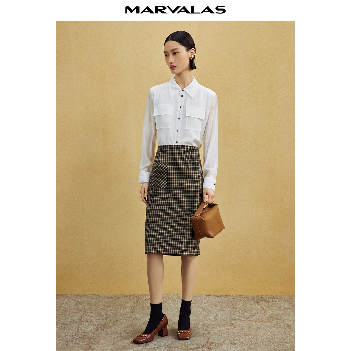 18345614 女长袖 设计师款 佐丹奴宽松miu系学院风花边立领格纹衬衫