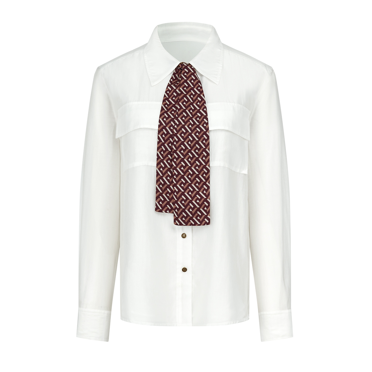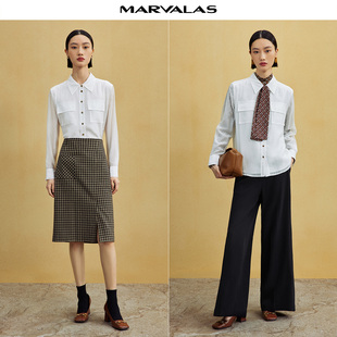 白色缎面衬衣飘带小个子工装 女长袖 上衣 气质教师穿搭衬衫 春秋新款