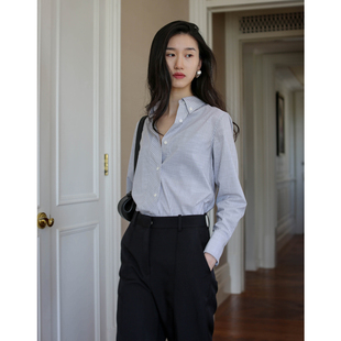 无有无印抗皱棉质灰色条纹长袖 23208 百搭通勤显瘦气质衬衫