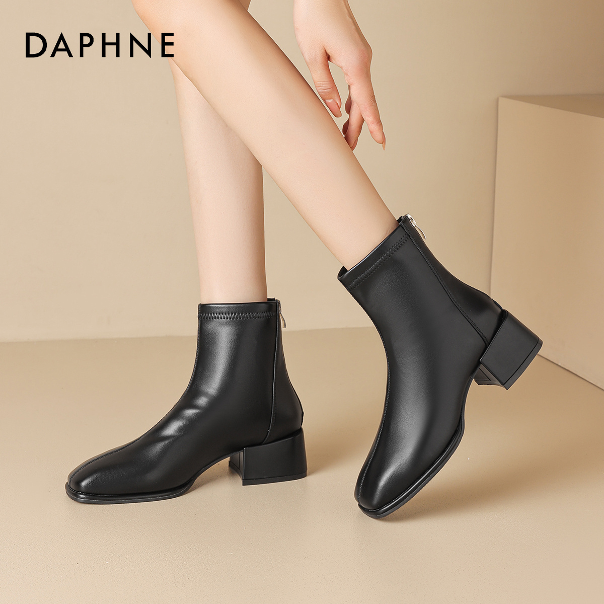 达芙妮高跟短靴女2025新款 小踝靴真皮粗跟白色瘦瘦靴 秋冬加绒法式