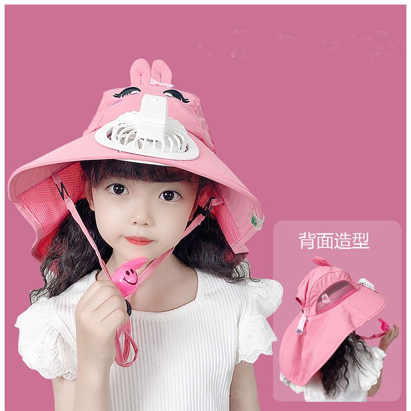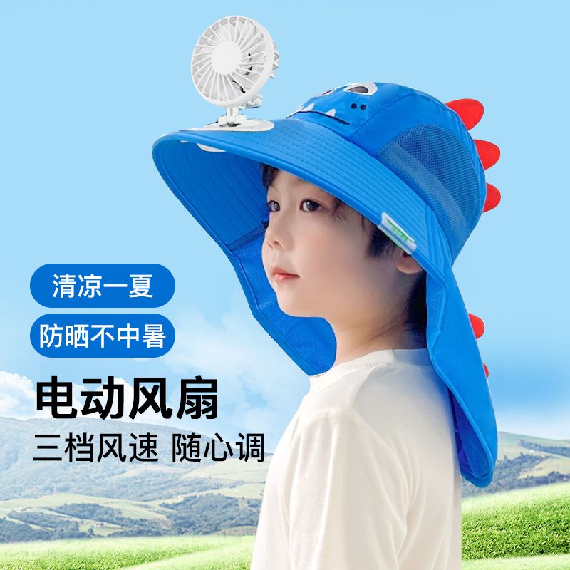 小黄鸭品牌儿童夏季 户外防晒帽带风扇大帽檐5男童6女童户外遮阳帽