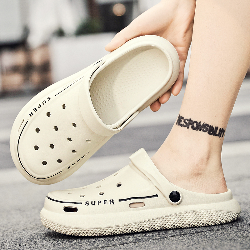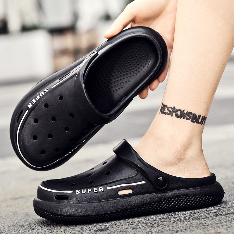 沙滩鞋 男防滑软底包头拖鞋 男外穿大码 休闲凉鞋 明星同款 夏季 洞洞鞋