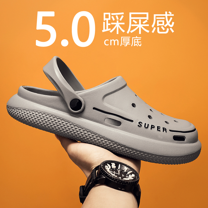 外穿厚底2025新款 沙滩鞋 凉鞋 洞洞鞋 男士 夏季 防臭防滑包头拖鞋 男款