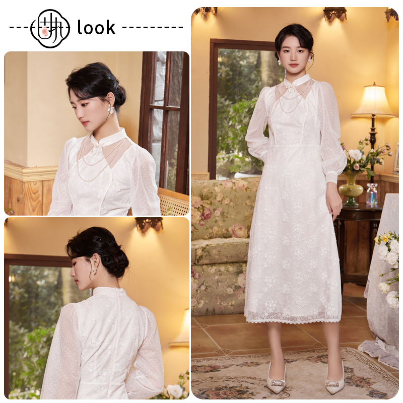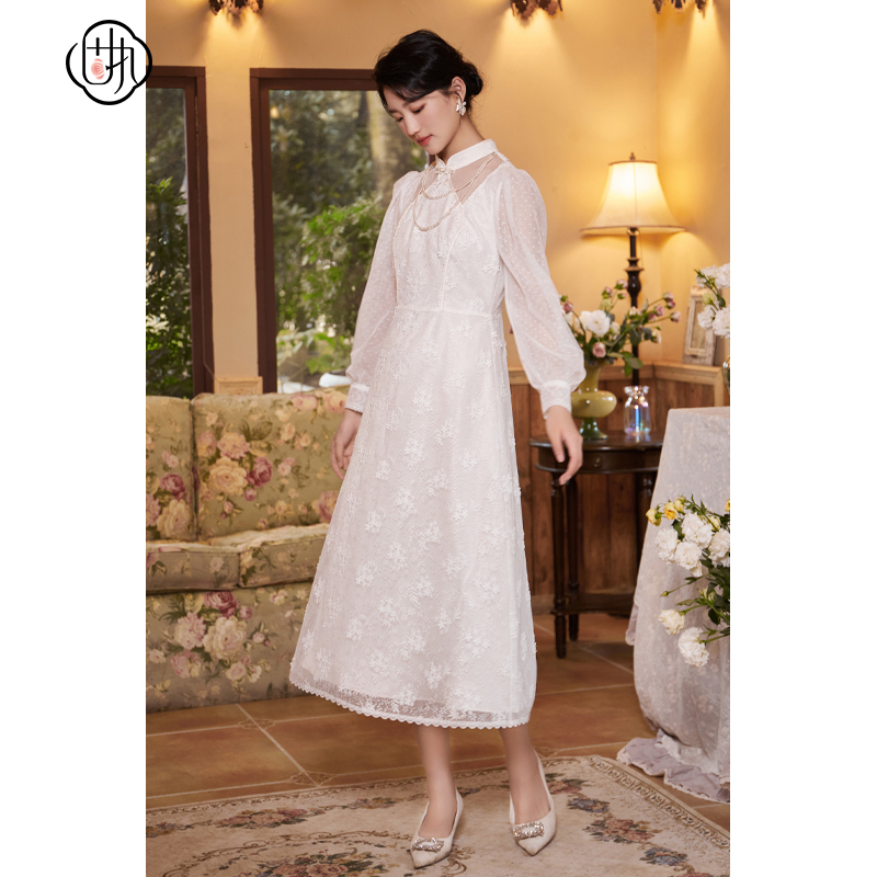 立领钉珠泡泡长袖 新中式 蕾丝连衣裙10833LQ08255 新款 固执秋季