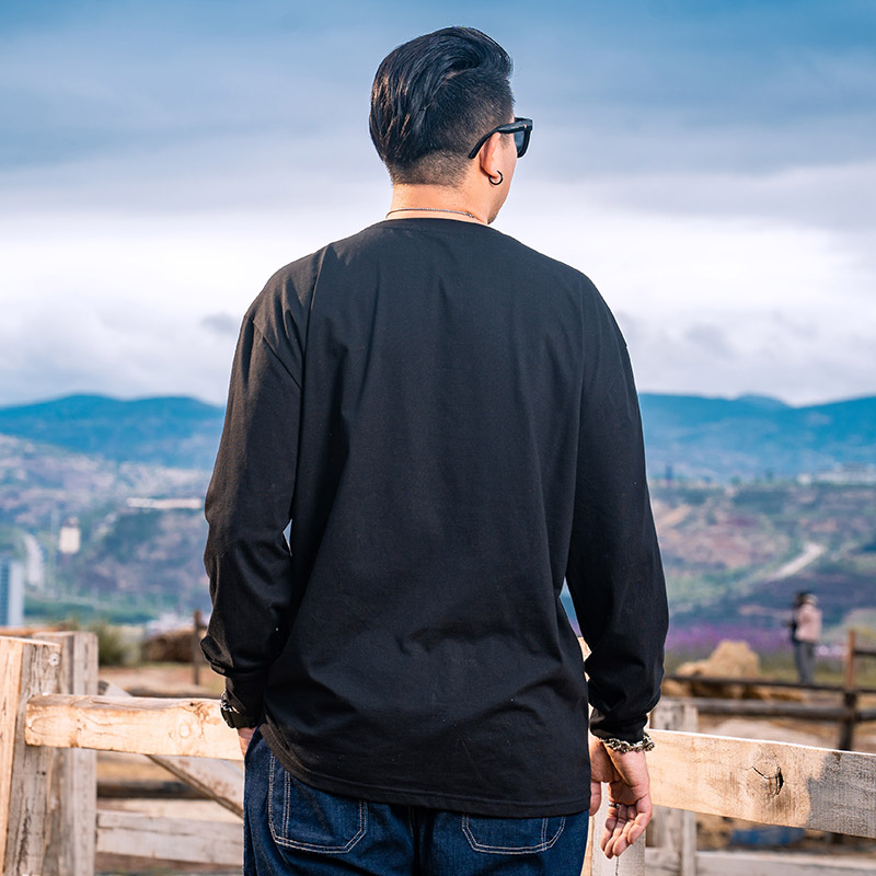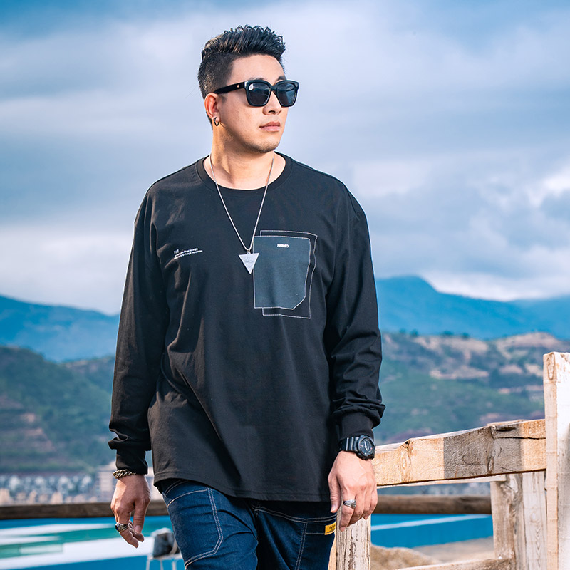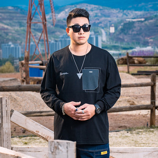 T恤秋打底衫 GxxH潮牌大码 长袖 男士 宽松潮流黑色圆领百搭上衣 男装