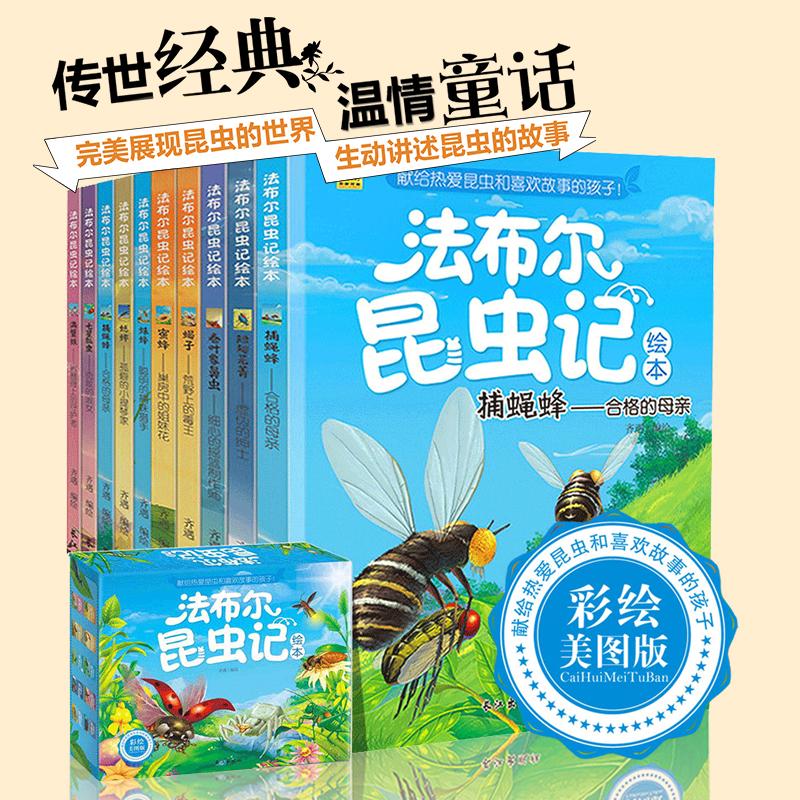 全套10册 阅读寒暑假书目正版 彩绘美图版 儿童昆虫科普百科全书绘本必小学生三四五六年级课外书推荐 原著完整版 法布尔昆虫记礼盒装