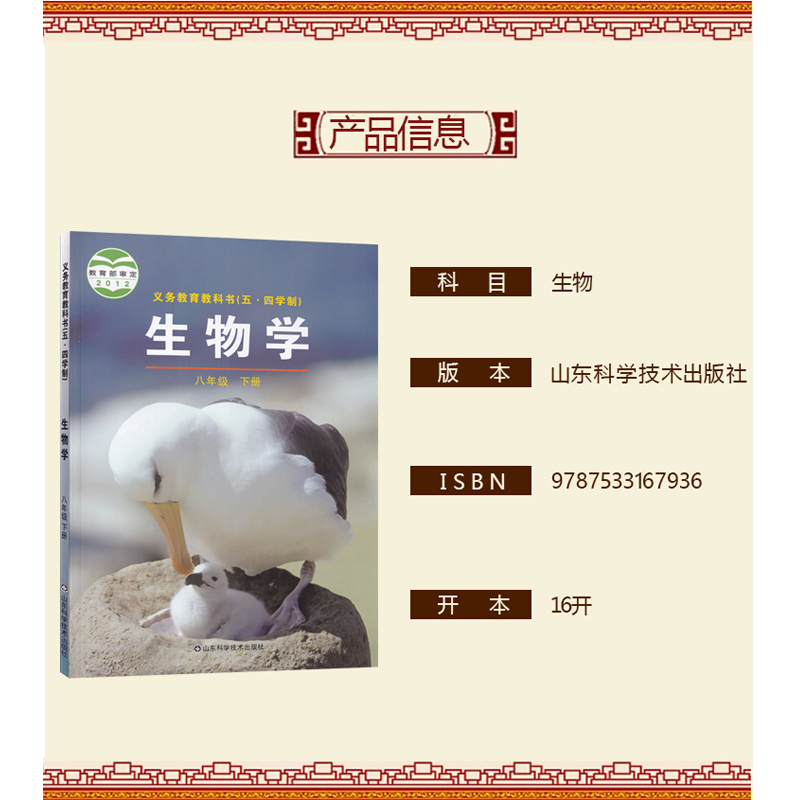 54学制 五四制中学生8八年级下册生物课本教材鲁科版 初中8八年级下学期学生生物教材教科书学生用书 社鲁科版 山东科学技术出版