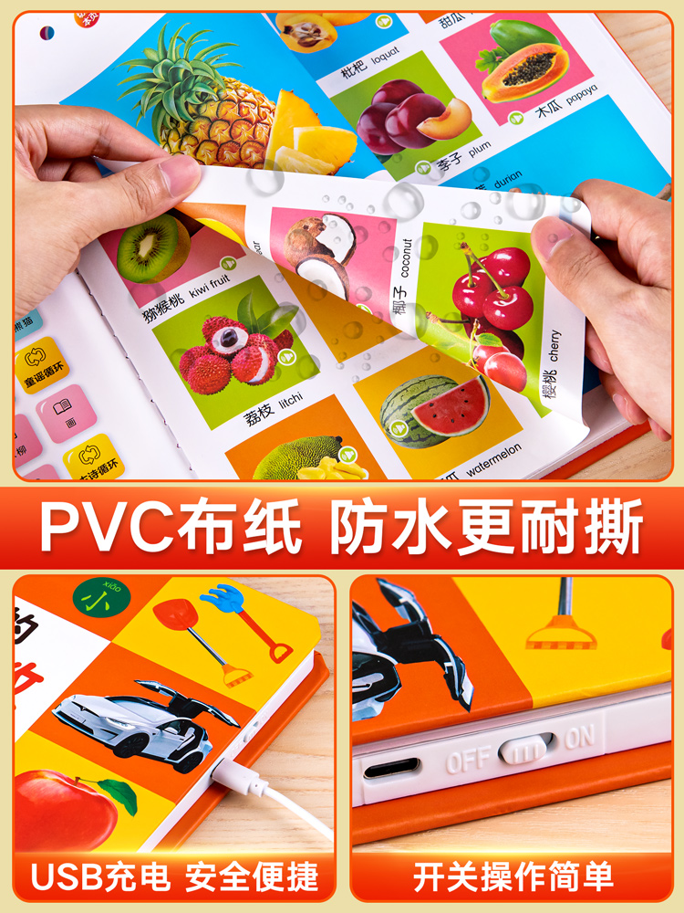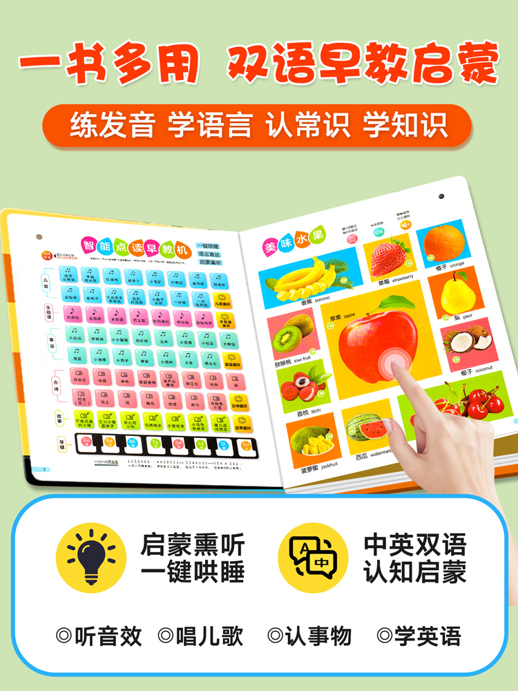 0到3岁儿童启蒙认知看图识物书籍1 3岁宝宝学说话有声绘本读物儿童益智童谣儿歌玩具 双语早教有声书幼儿手指点读发声书 会说话