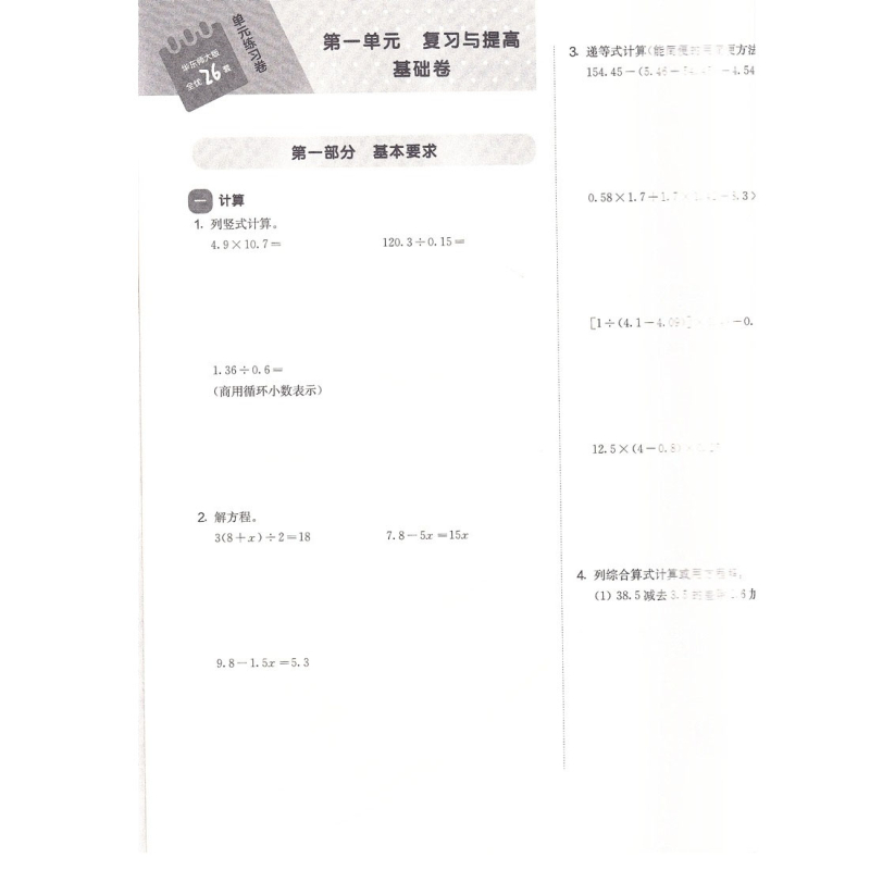 社 卷阶段卷含答案华东师范大学出版 华东师大版 全优26套五年级下册数学上海小学教材同步配套测试卷5年级第二学期单元