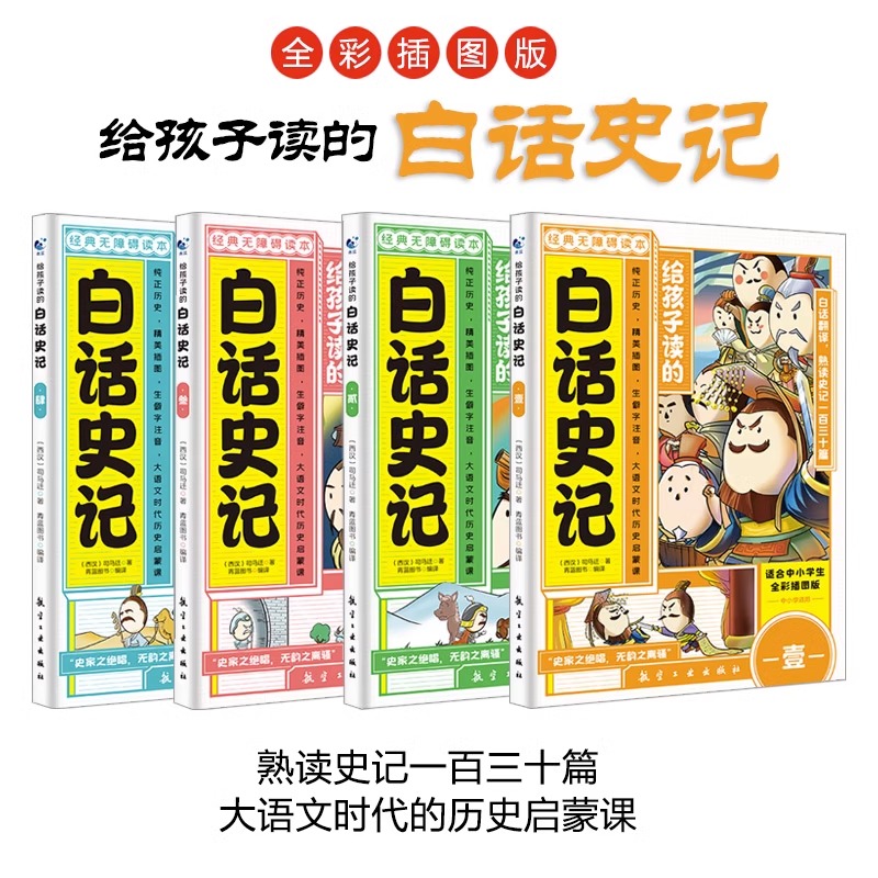 漫画版 白话史记 史记全册正版 原著书小学生版 国学中国历史少年读史记三四五六年级课外阅读书籍 全4册 青少年儿童版 给孩子读