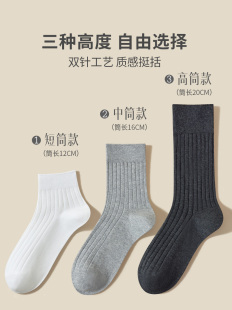袜子男纯棉春秋款 中筒袜 短袜7a抗菌灰色无骨防臭脚吸汗青少年男士