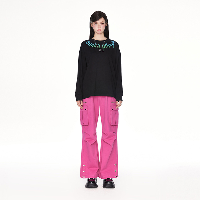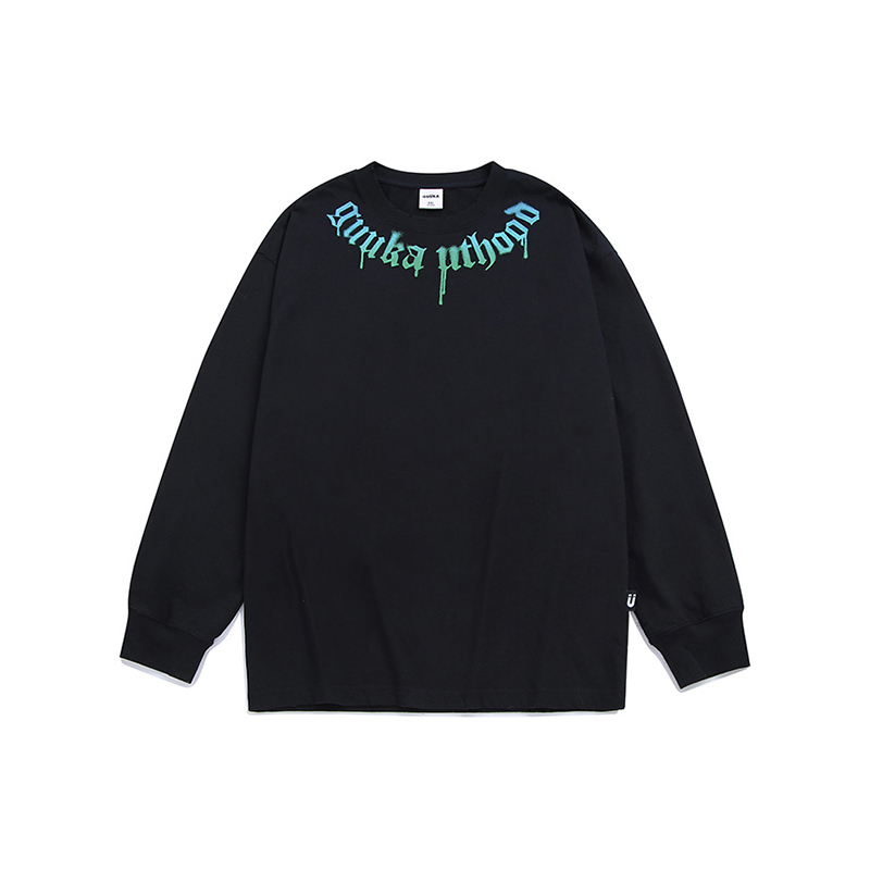 GUUKA黑色落肩重磅长袖 宽松 T恤女纯棉情侣嘻哈渐变字母印花打底衫