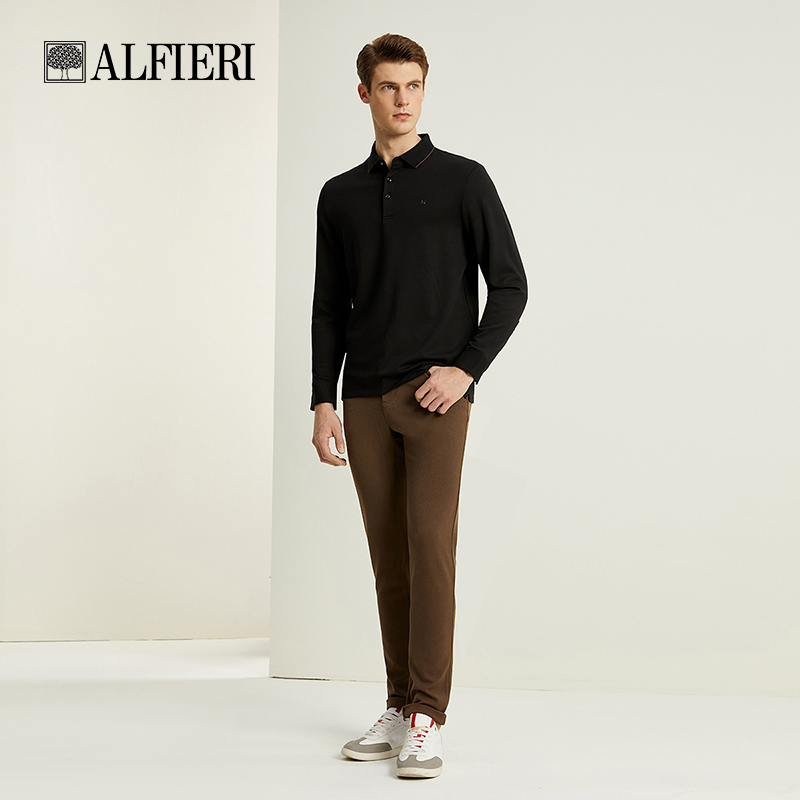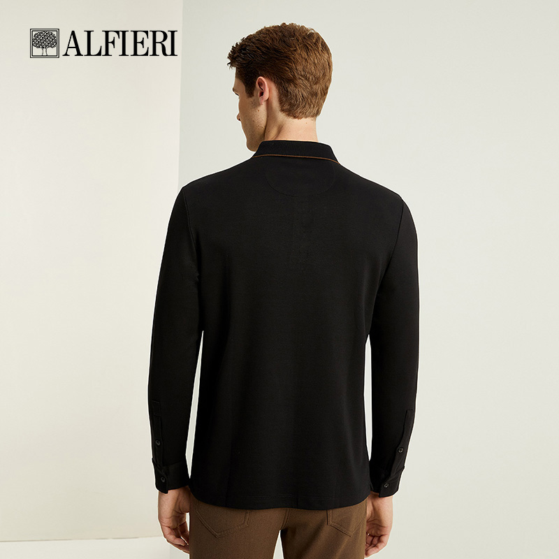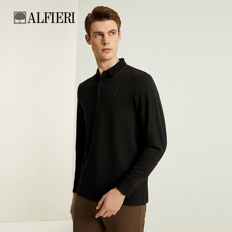 长袖 秋冬新商务舒适简洁大气撞色翻领男士 T恤 男装 艾法利