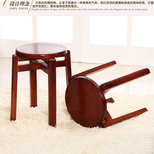 实木凳子圆凳凳子餐桌凳仿古复古简约家庭酒店饭店换鞋 现代时尚
