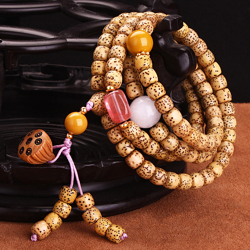海南原生态打磨鸡油黄星月菩提子老籽圆珠文玩佛珠手串男士 手链女
