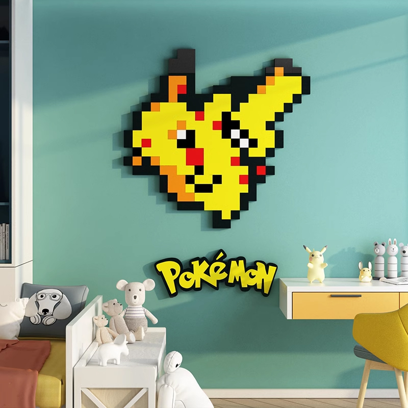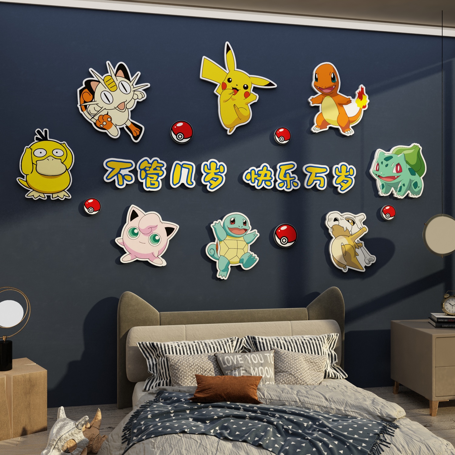 儿童区卧室房间布置男孩装 饰宝可梦皮卡丘生日墙面贴壁纸精灵海报