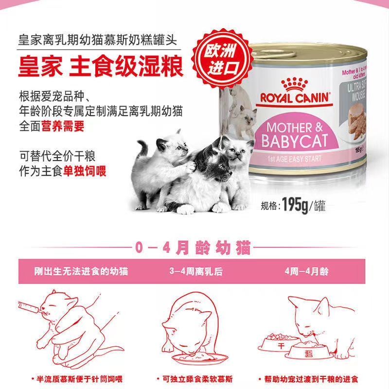 进口皇家猫罐头湿粮离乳期幼猫慕斯猫奶糕罐头195g主食罐猫咪零食