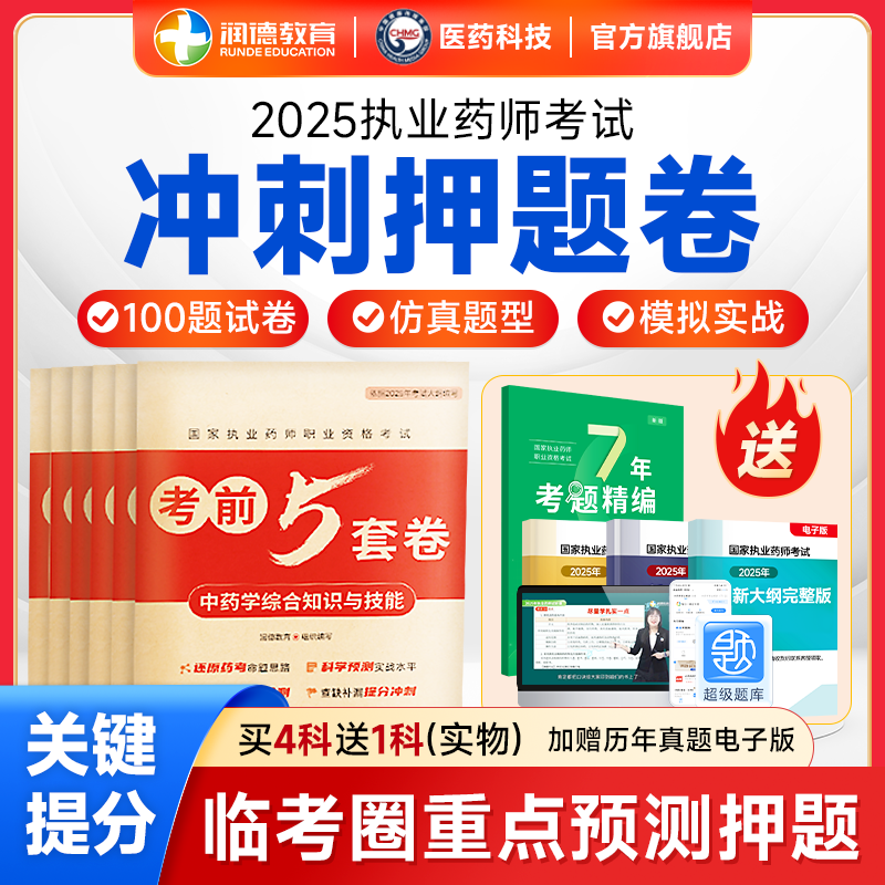 润德2025年执业药师考前5套卷新大纲100题冲刺模拟押题卷仿真题套卷习题摸底测试答案详细解析 超级题库会员plus电子历年题库