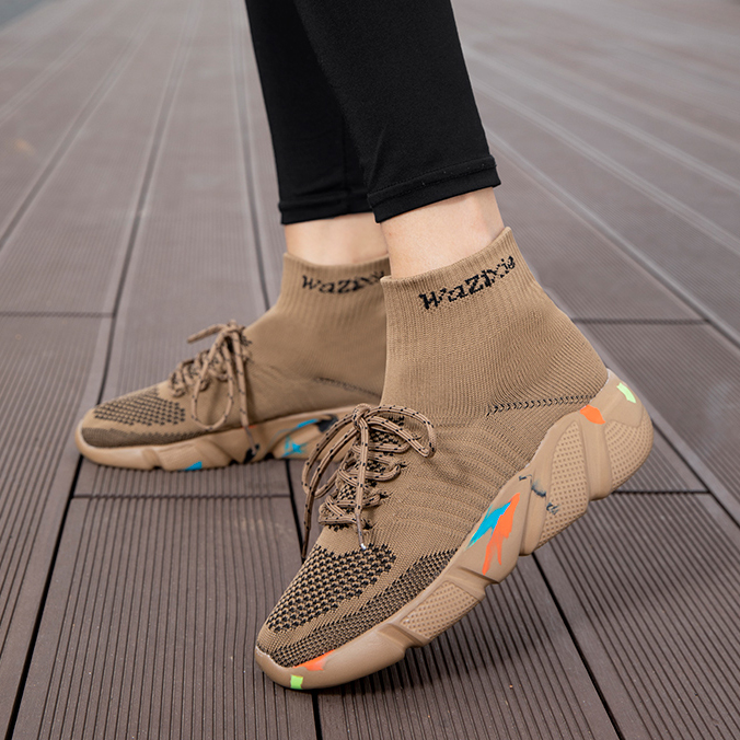 百搭休闲皮面防水青少年跑步运动篮球增高老爹鞋 森马高帮男鞋 秋季