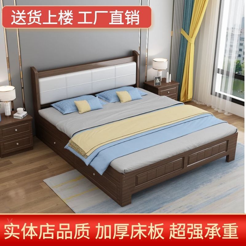 特价 软包实木双人1.8×2大床1.5米家用单人1.2成人1米出租房简易