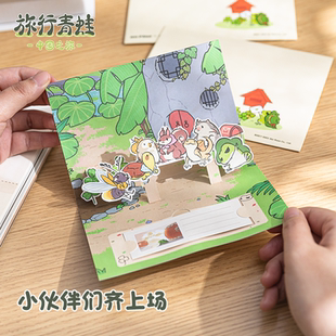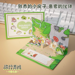 旅行青蛙官方周边 加赠枣花酥道具 蛙蛙立体纸雕明信片贺卡