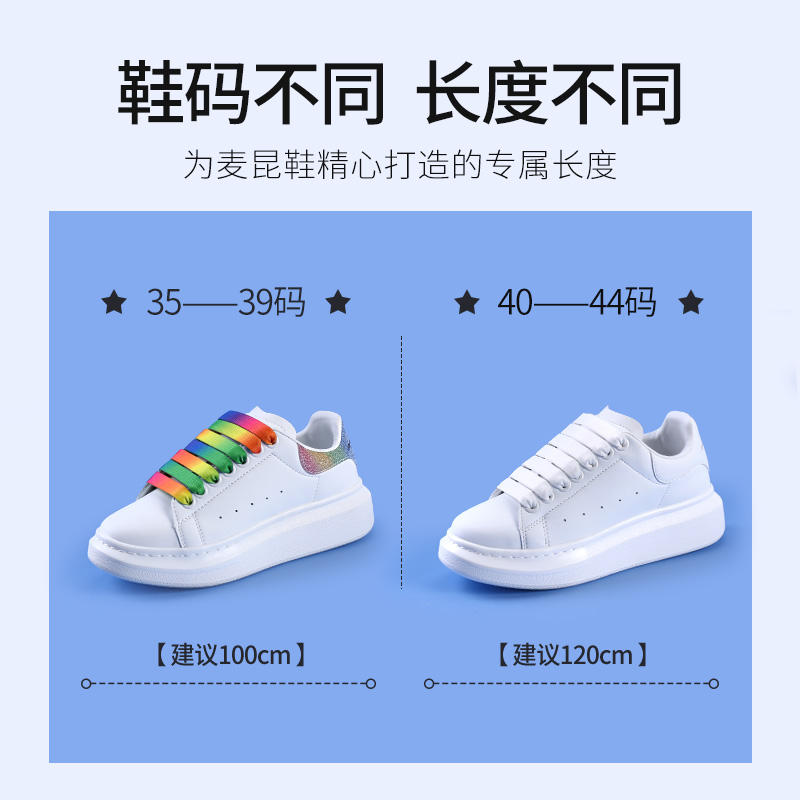 彩粉黑白色鞋 帆布鞋 绳 带适用麦昆McQueen男女扁平宽小白鞋 野象鞋