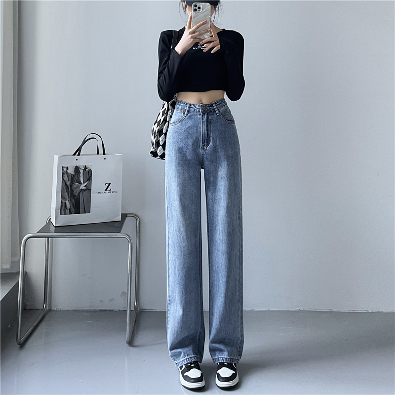 小个子高腰显瘦拖地直筒裤 阔腿牛仔裤 爆款 2025年新款 子 女秋季