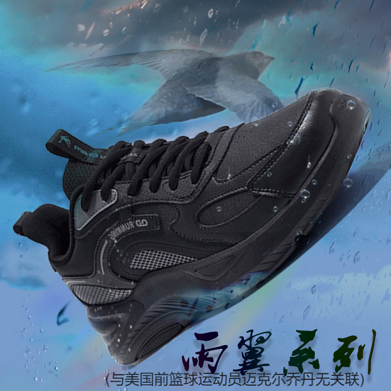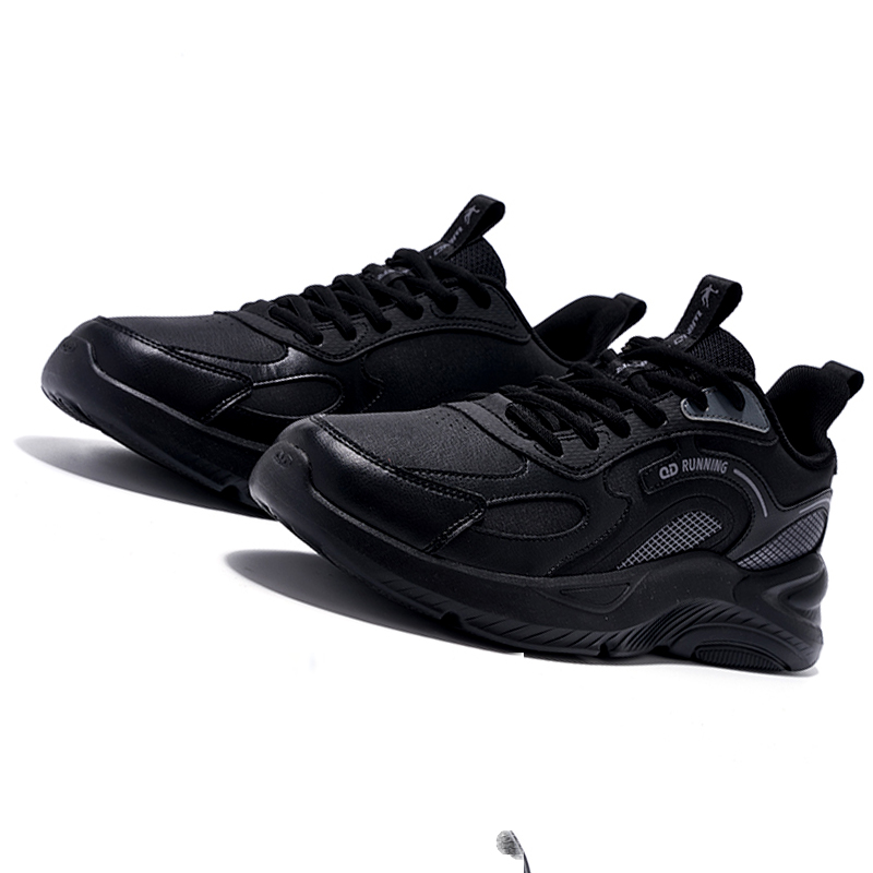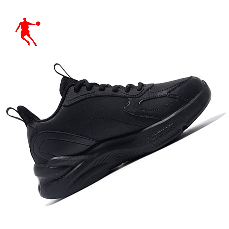 纯黑色工作上班运动鞋 波鞋 皮面防水跑步鞋 旅游鞋 品牌正品 乔丹男鞋