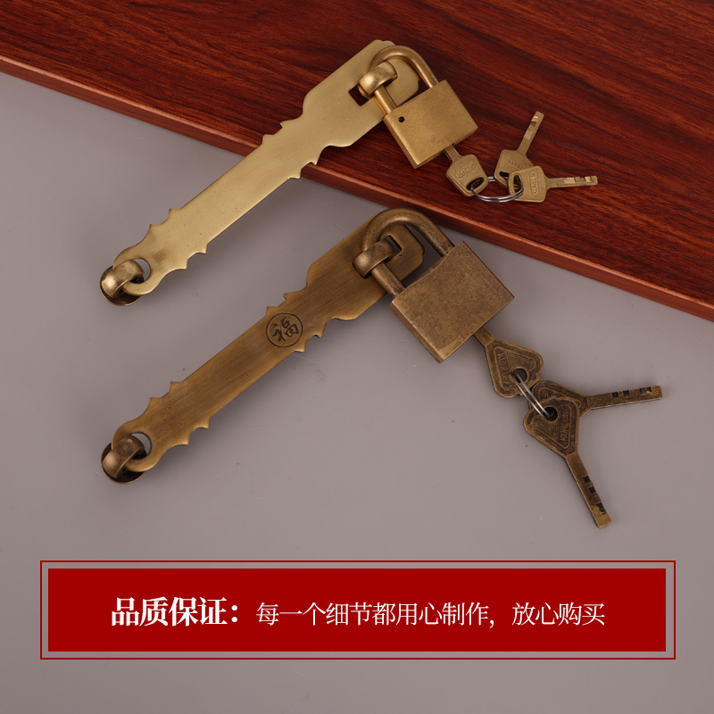 中式 锁链复古全铜大门门栓锁 仿古纯铜锁扣木门铜搭扣门扣门锁老式
