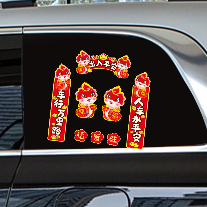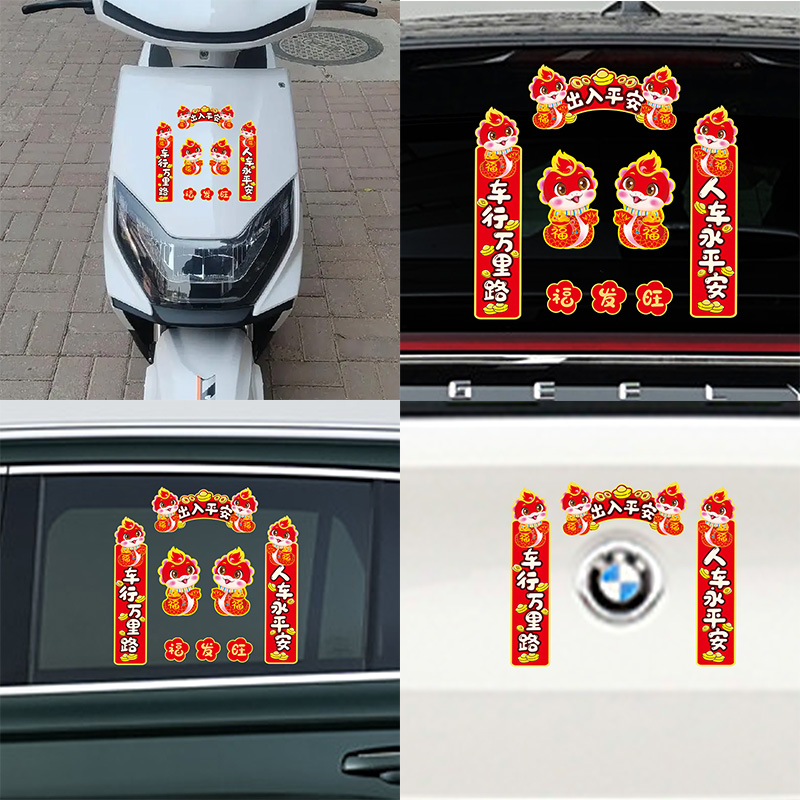 2025新年春节出入平安对联车行万里路电动摩托车汽车创意装 饰贴纸