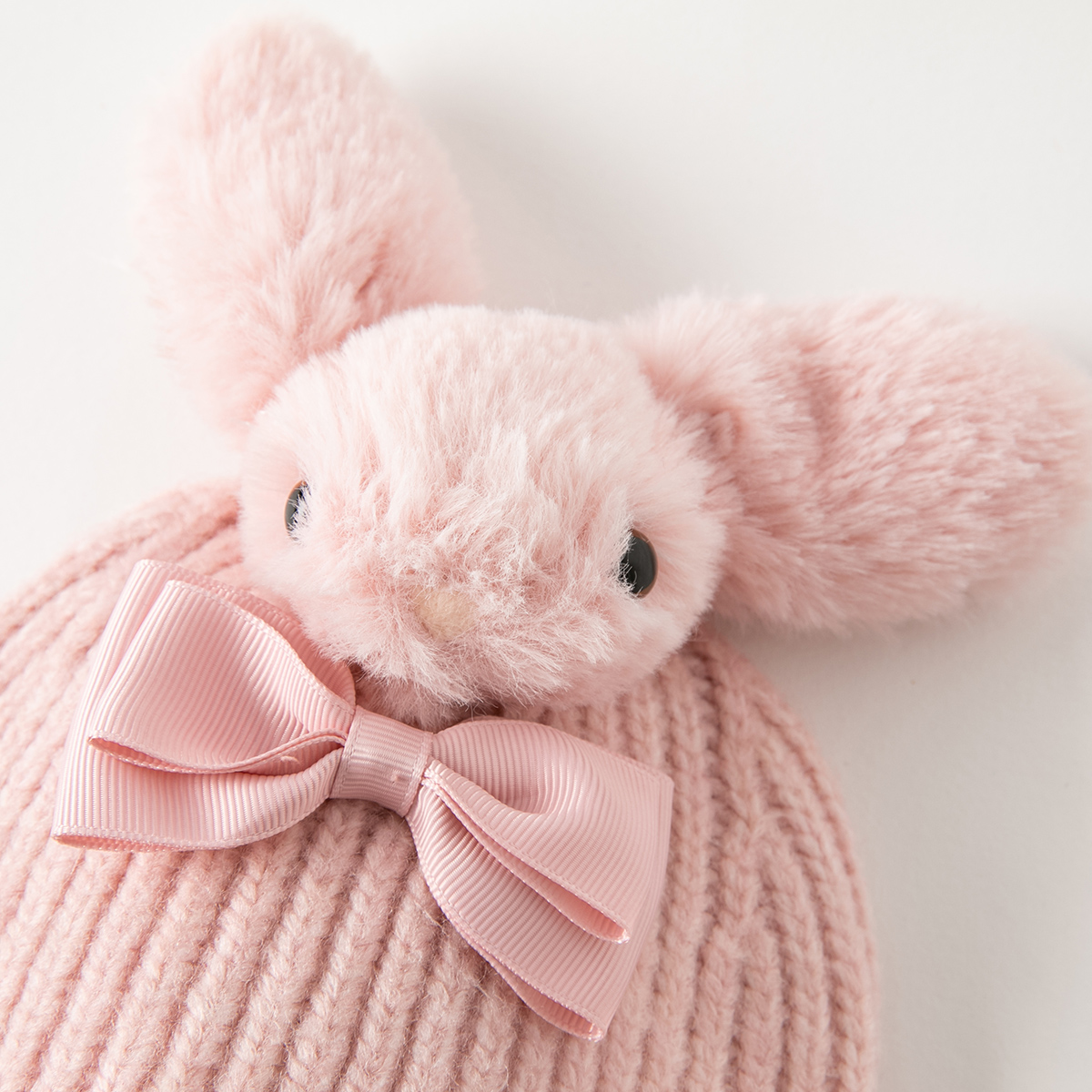 婧麒婴儿帽子秋冬款 新生婴幼儿护耳帽可爱保暖男女宝宝针织毛绒帽