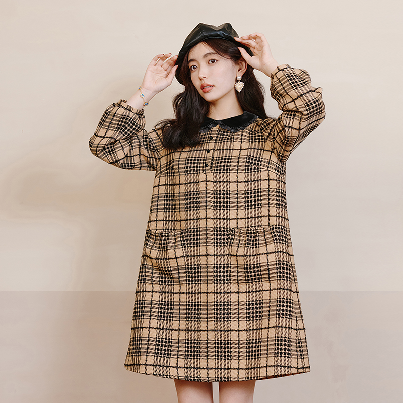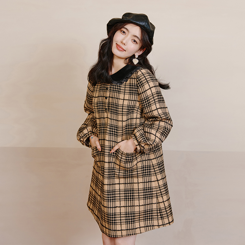 A型连衣裙TL31DR037A 娃娃领宽松气质优雅百搭长袖 tanni季 新款