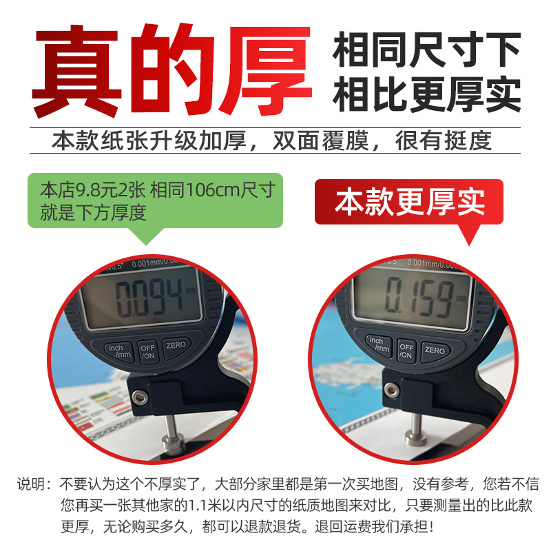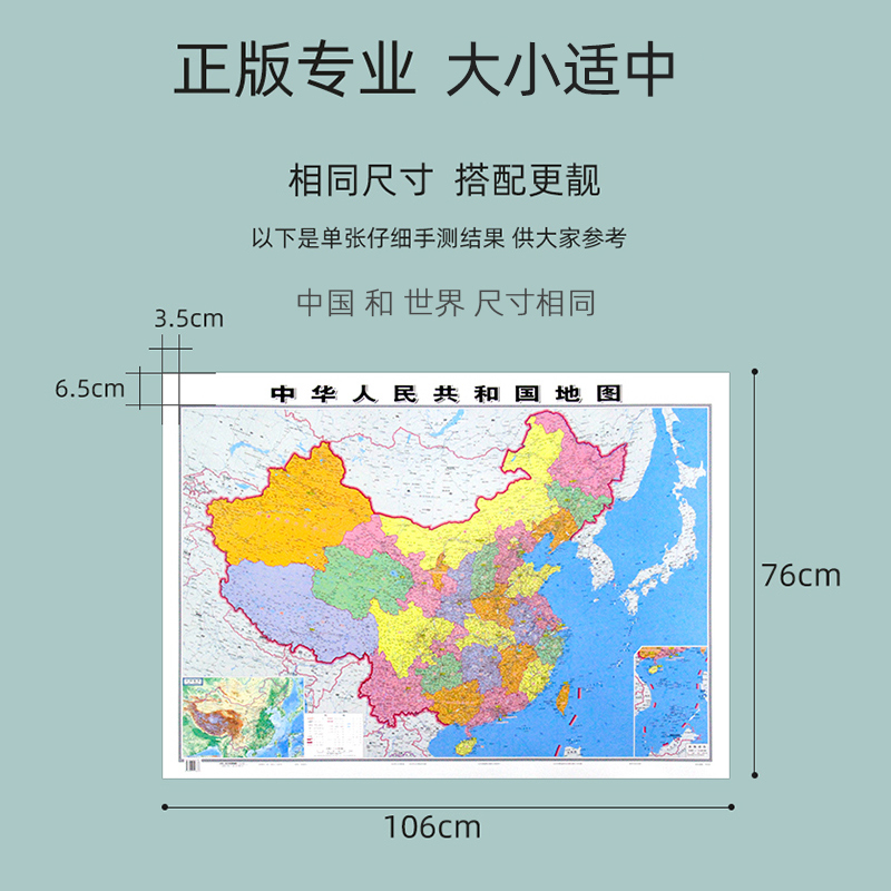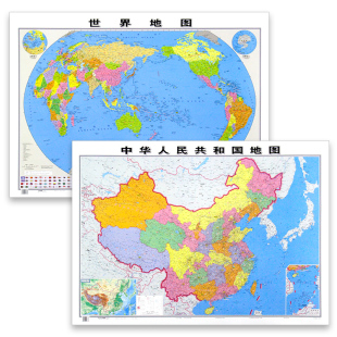 0.8米墙贴装 2022年全新 约1.1 中国和世界地图高清防水覆膜正版 饰创意挂画全国区划办公室学生家用贴墙地图挂图 2张升级加厚版