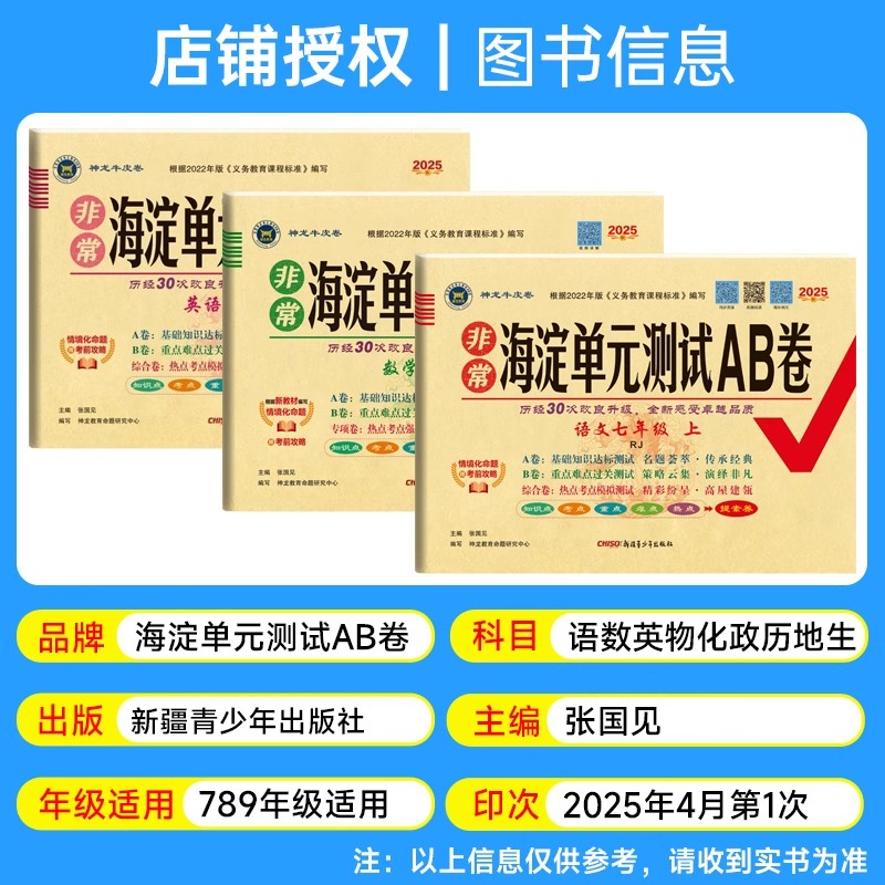 当当网2025秋非常海淀单元 初中一二三同步试卷测试卷AB卷 测试ab卷七八九年级上册下册语文数学英语物理化学政治历史地理生物人教版