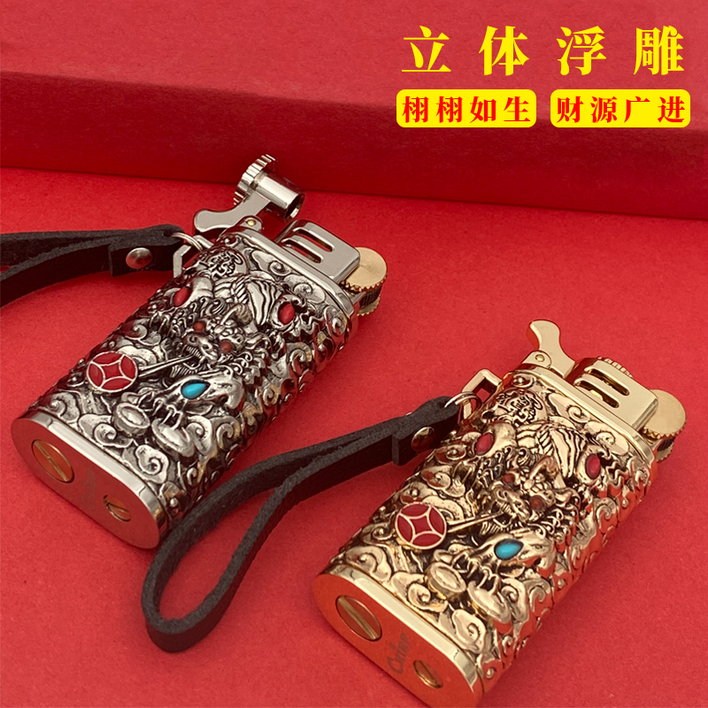 首领煤油防风打火机盔甲招财进宝貔貅创意浮雕复古砂轮礼品男便携