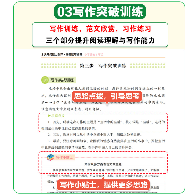 现货官方正版 小学语文1 寒假读写辅导 阅读力测评下册寒假作业 6年级寒假作文素材读写转化高效训练 木头马2025春新版
