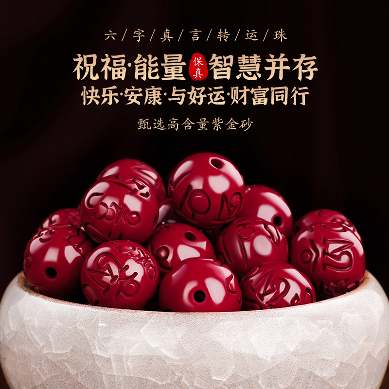 六字真言朱砂散珠配件天然真品高纯度原矿纯正紫金砂手串珠子配饰