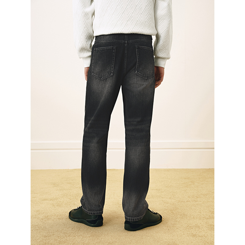 海澜之家轻商务加绒加厚牛仔裤 子男士 秋冬季 保暖直筒长裤 新款 HLA