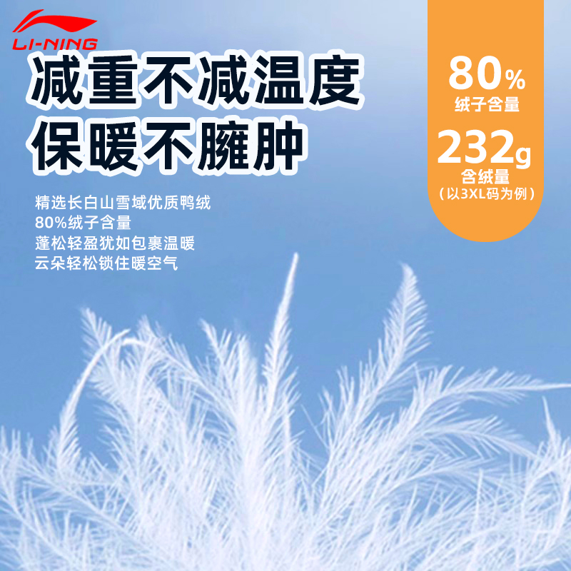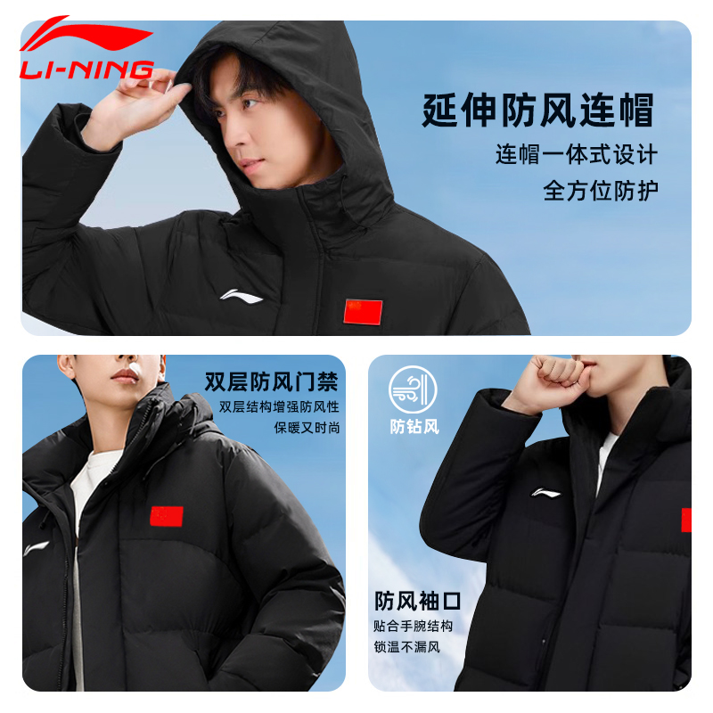 情侣青少年棉衣官网正品 新国旗款 同2025冬季 李宁羽绒服男女中长款