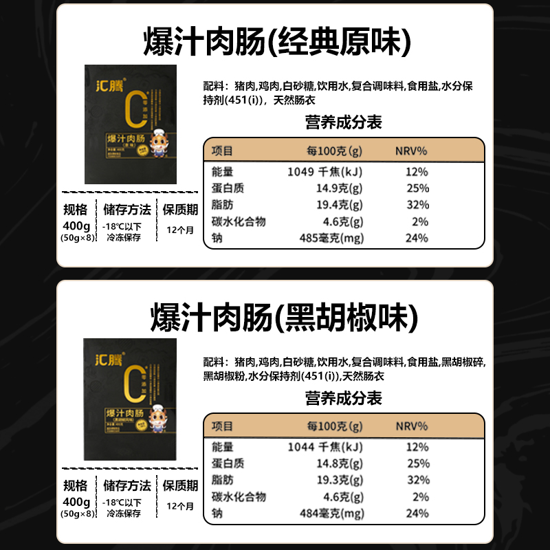 汇腾无添加烤肠黑胡椒肉肠空气炸锅脆皮纯肉儿童早餐香肠火山石0