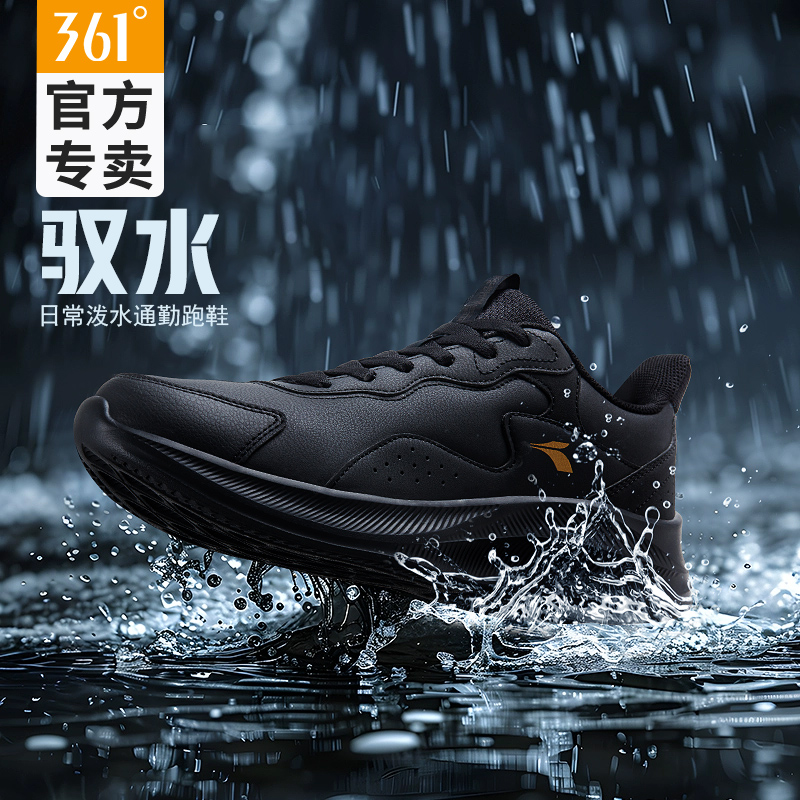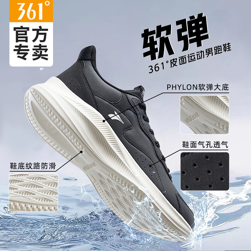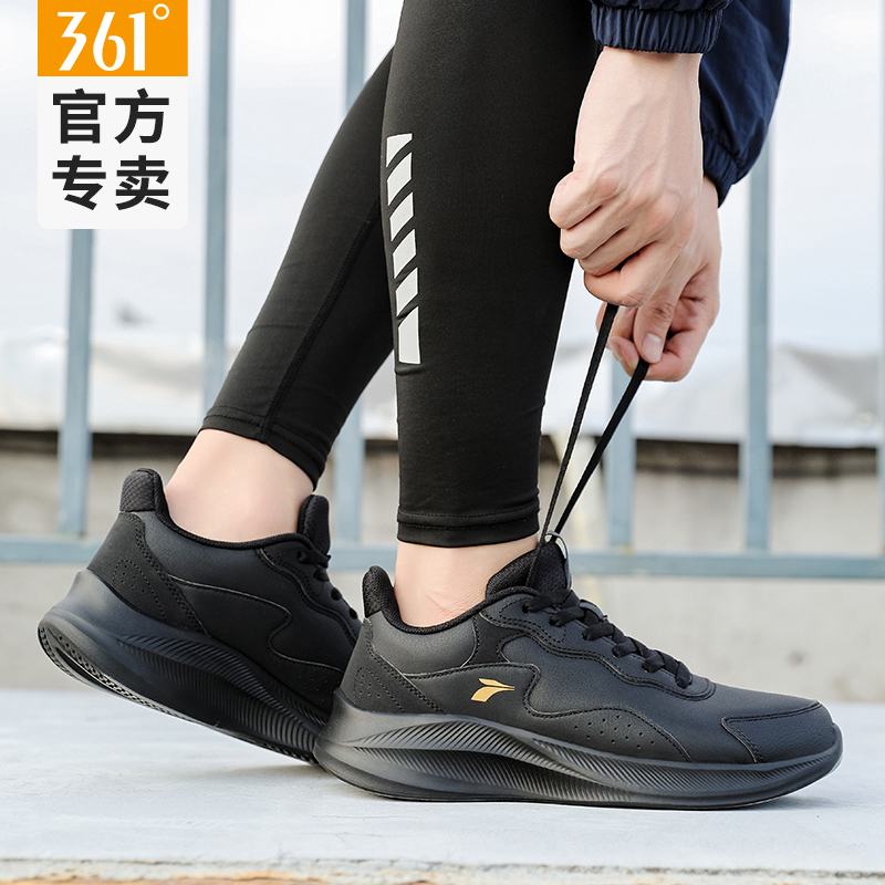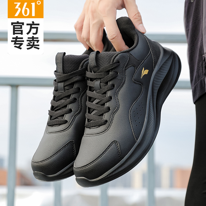 皮面保暖防水鞋 春秋新款 子夏季 黑色减震跑步鞋 361运动鞋 男款 男鞋