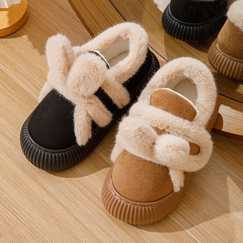 一脚蹬保暖加绒棉拖鞋 秋冬季 女外穿2025新款 厚底勃肯包头毛毛拖鞋