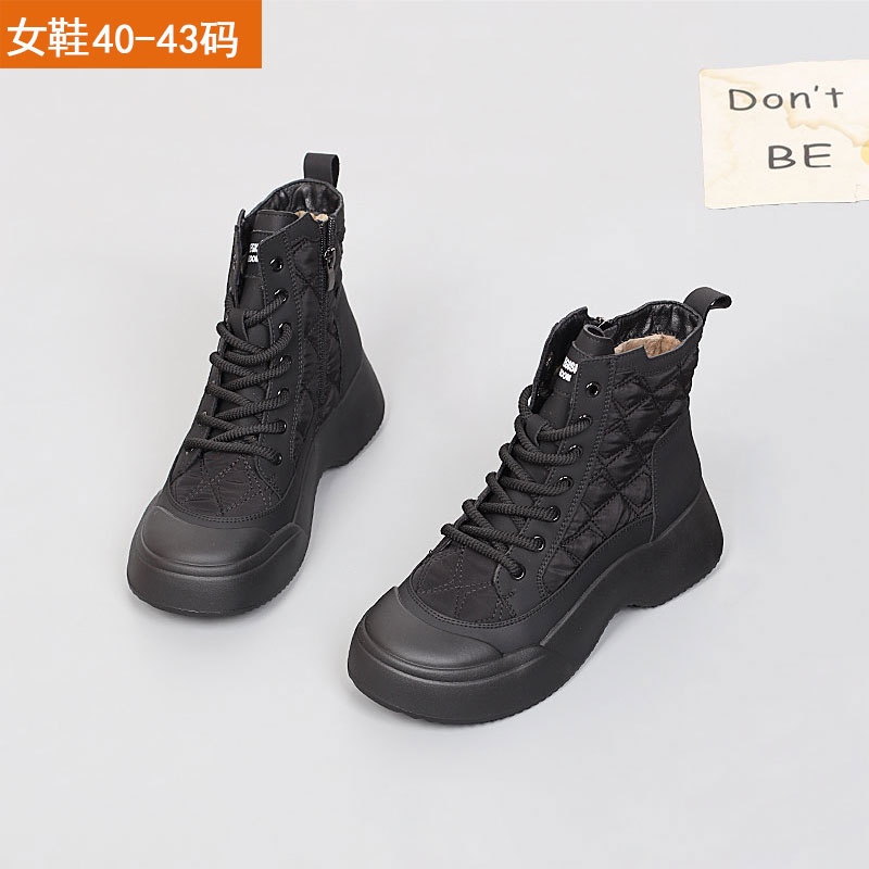 黑色增高靴子女时尚 新款 休闲皮面短靴 2025秋季 环球厚底马丁靴女款