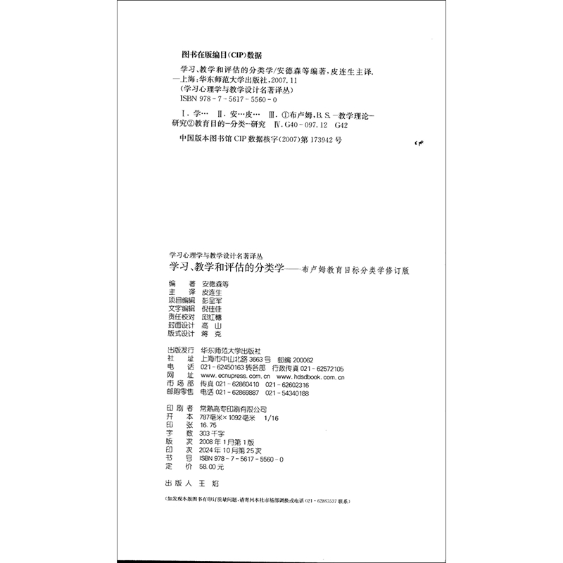 学习心理学与教学设计名著译丛 分类学:布卢姆目标分类学修订版 教学和评估 学习