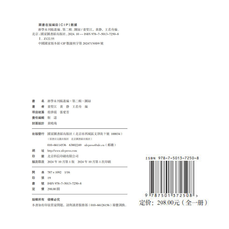 童圣江 社 黄静 国家图书馆出版 9787501372508 王若舟 浙学未刊稿丛编﹒第二辑﹒图录