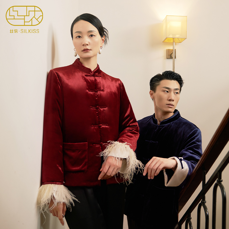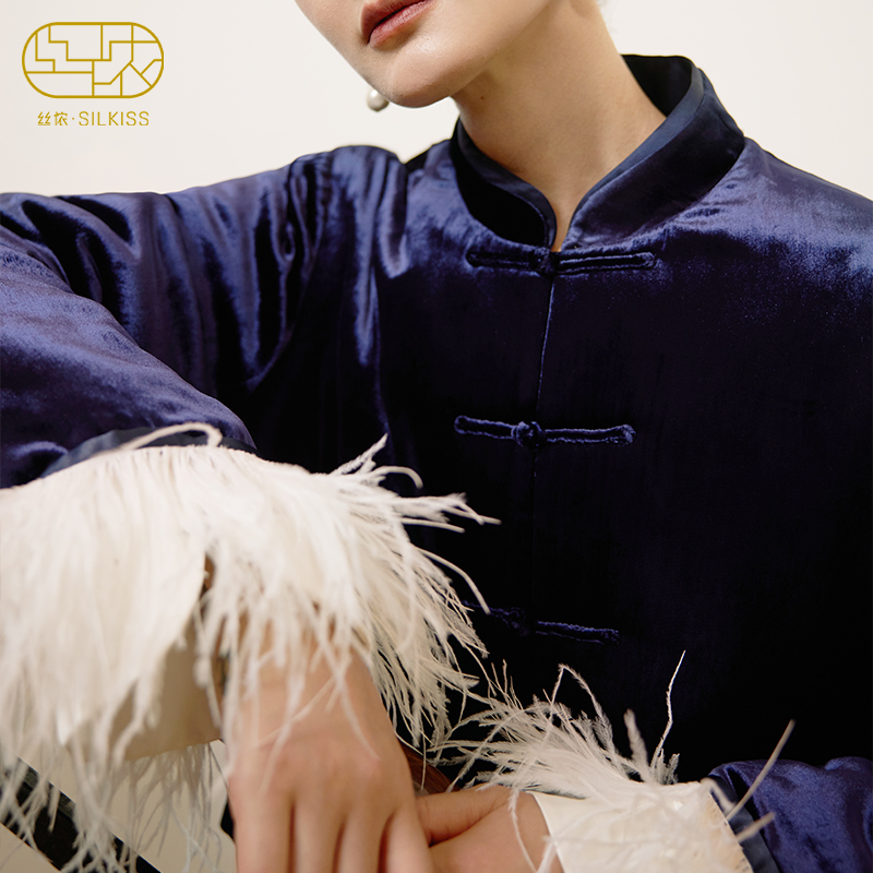 丝侬真丝丝绒睡衣女款 袄子加厚外套盘扣保暖夹棉家居服可外穿 长袖